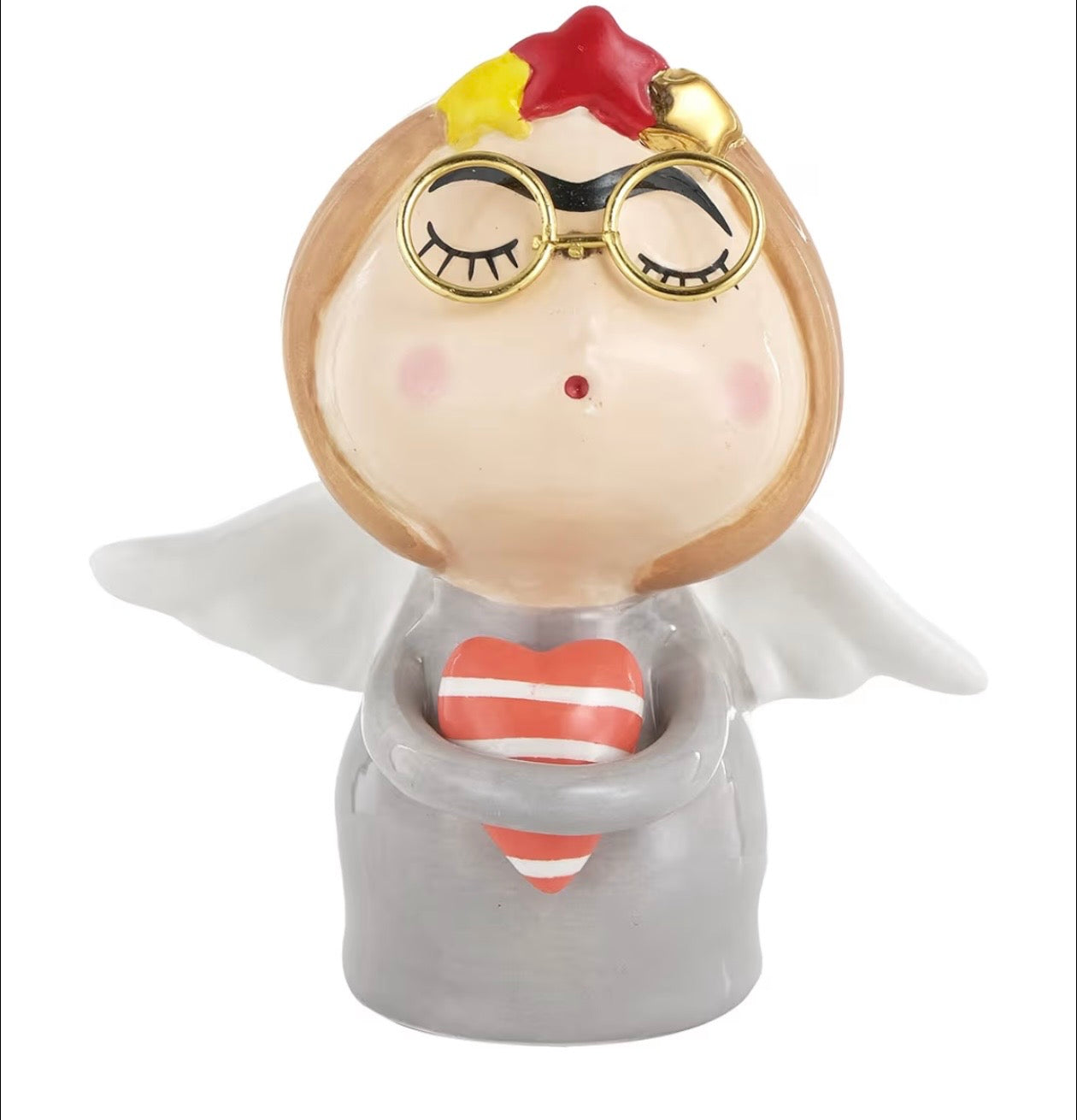 Angelo con occhiali e cuore tra le braccia, in porcellana - Montemaggi