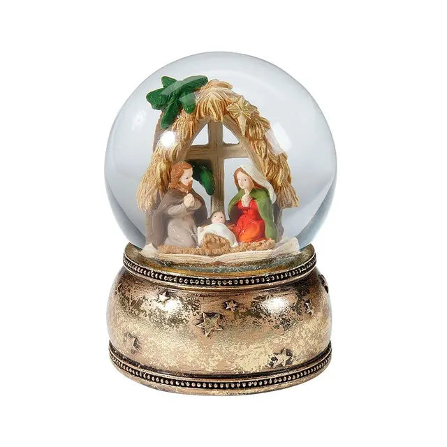 Carillon con palla in vetro , con musica natalizia e neve. Base in oro - Montemaggi