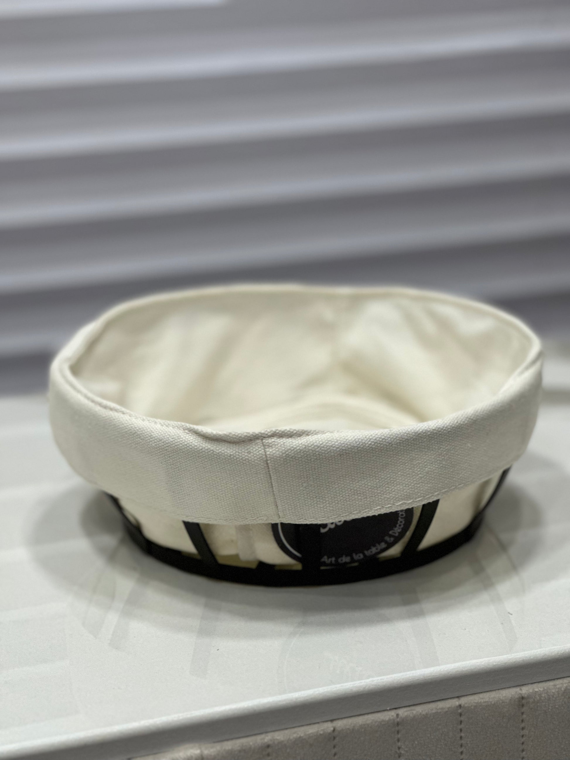 Cestiera ideale per il pane, con struttura in metallo e tessuto.
