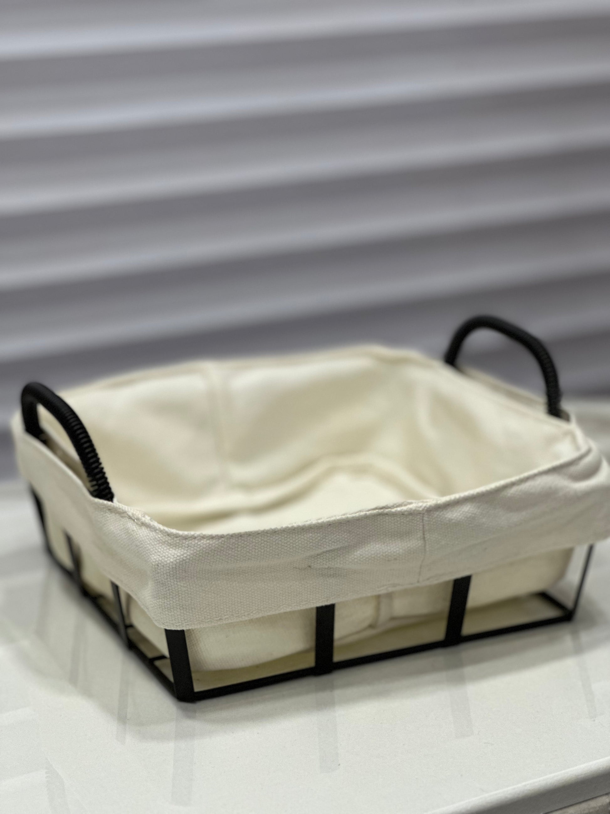 Cestiera ideale per il pane, con struttura in metallo e tessuto.