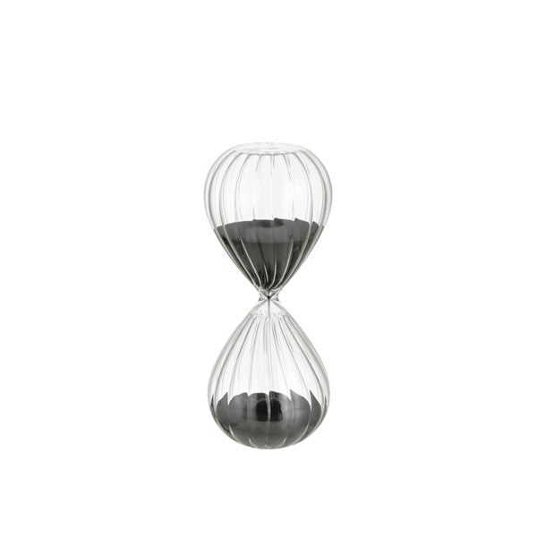 Clessidra in vetro con sabbia nera. Durata 15 minuti