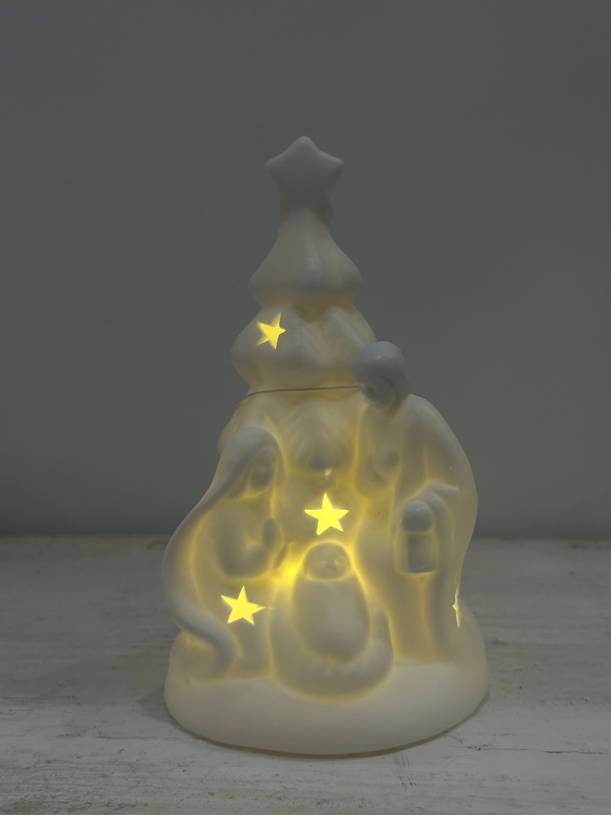 Natività con luce in porcellana mat. Crea un'atmosfera magica ed è adatto ad ogni ambiente. Da ammirare la magia luminosa al buio - HENRIETTE