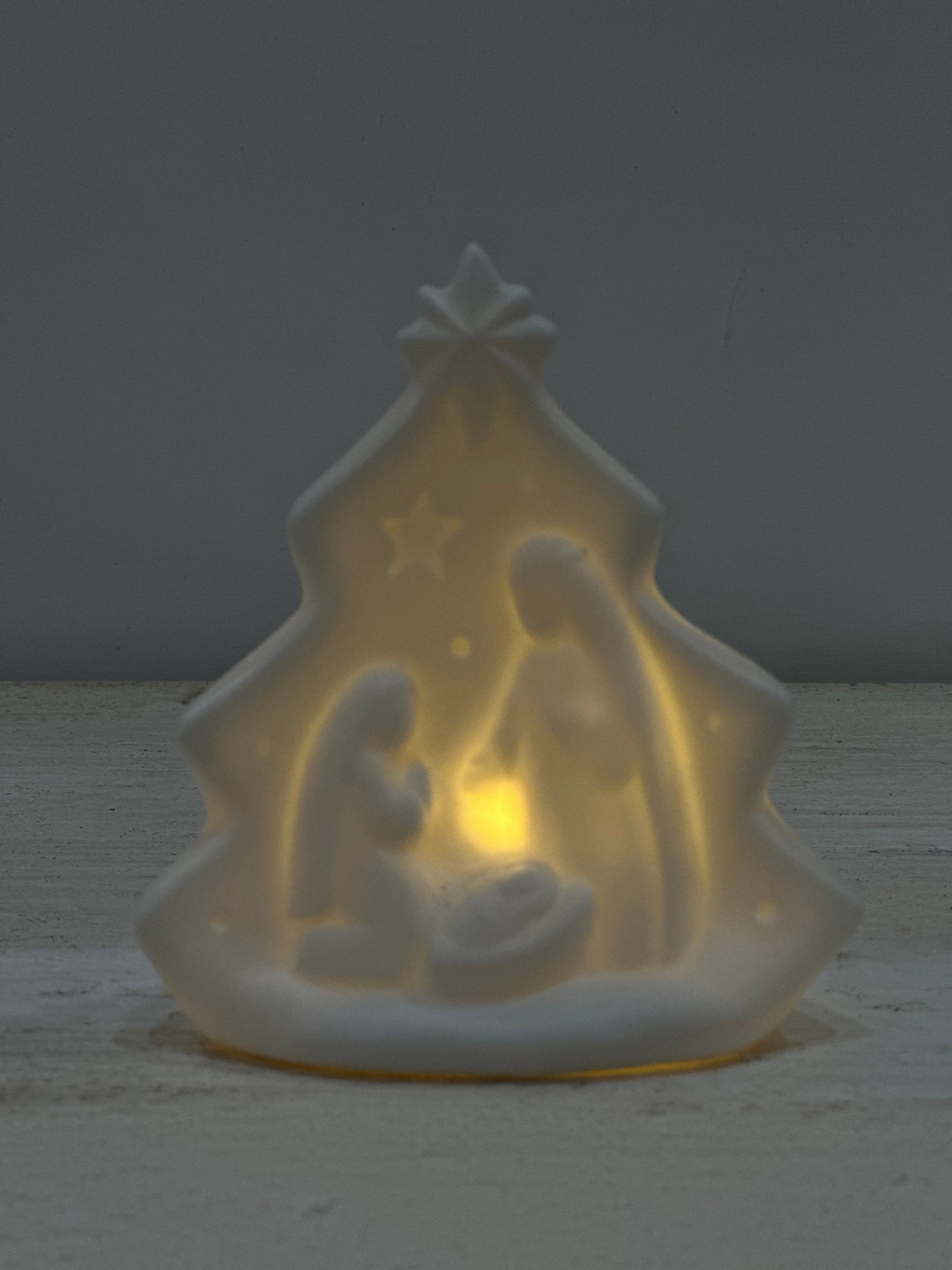 Natività con luce in porcellana mat. Crea un'atmosfera magica ed è adatto ad ogni ambiente. Da ammirare la magia luminosa al buio - HENRIETTE