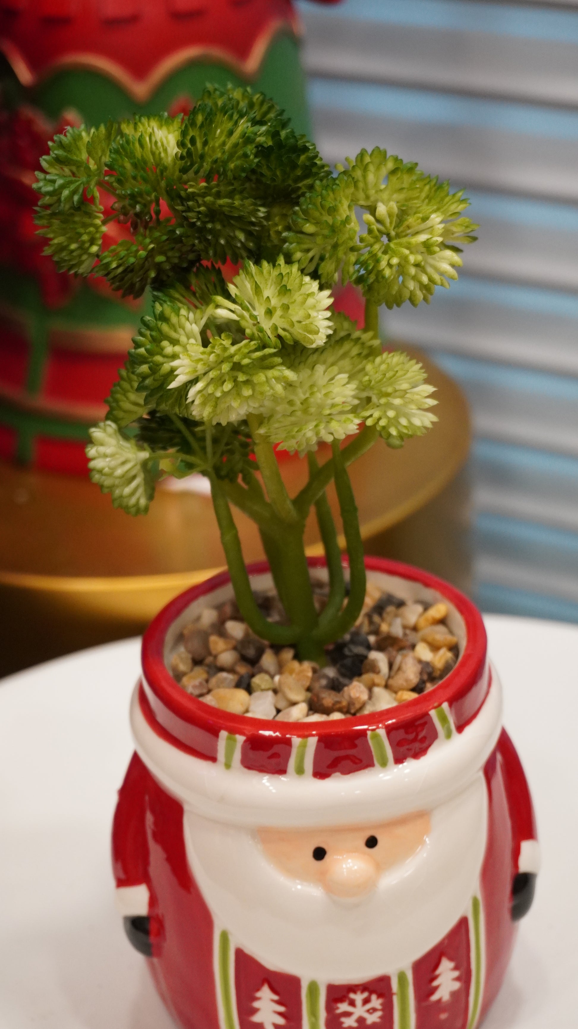 Vasetto natalizio con all’interno una piantina grassa finta - Montemaggi