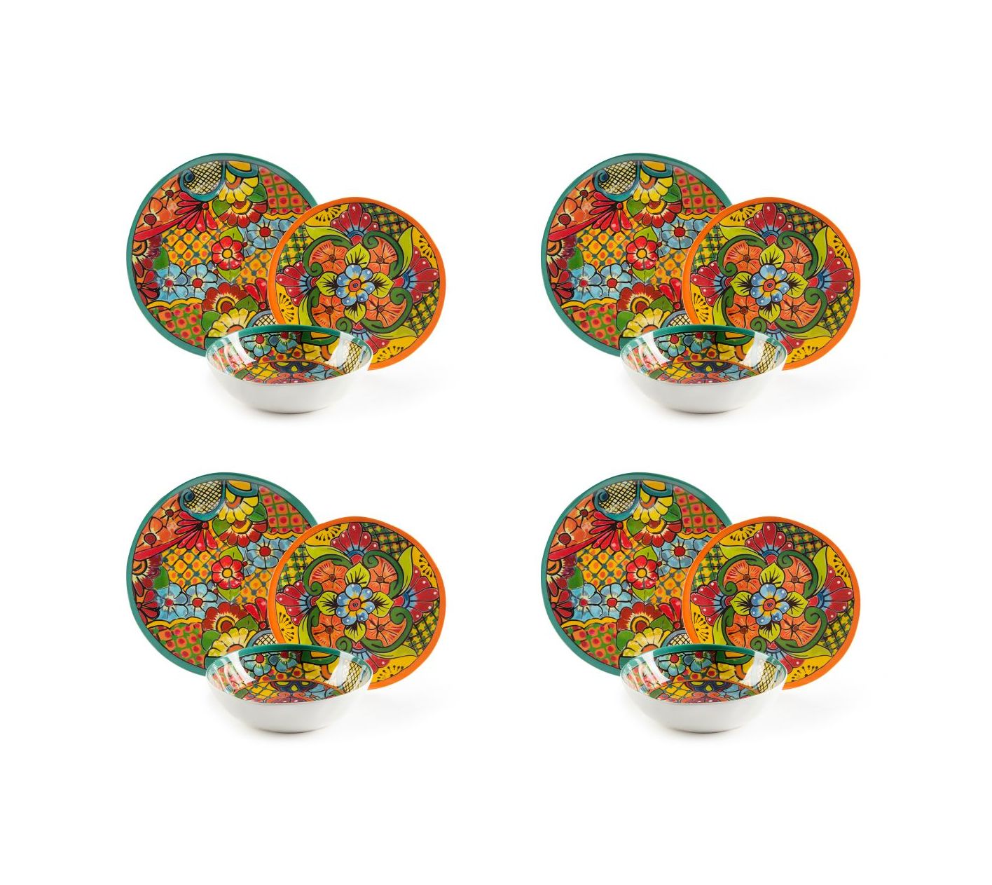Servizio piatti da 12 pezzi in melamina, materiale plastico molto resistente all'usura e facile da pulire.