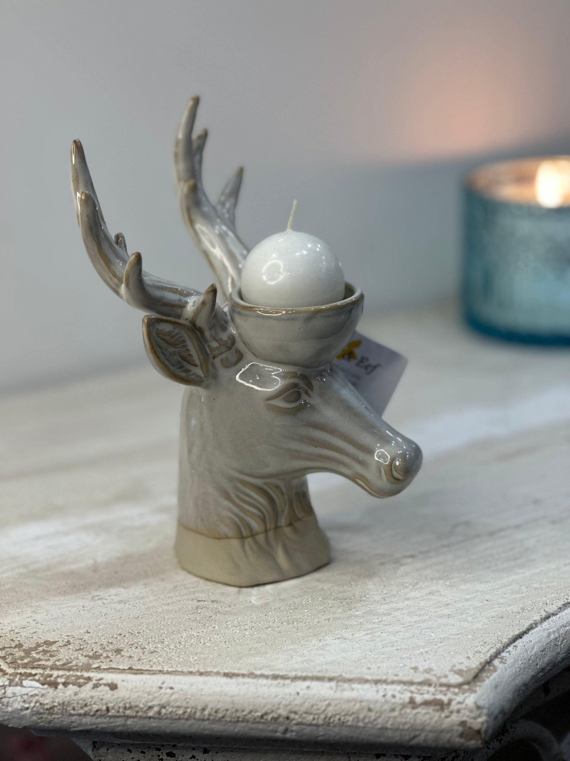 Renna Porta-tealight in ceramica in tonalità beige. Aggiungi un'atmosfera unica alla tua casa. Una bella idea regalo per le persone care - Clayre & Eef