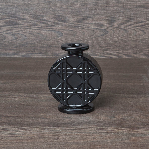 Elegante portacandela colore Nero con forme geometriche in rilievo.
