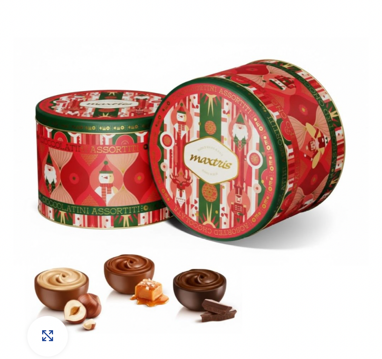 Scatola in latta da 300gr c/decorazione. All’interno cioccolatini assortiti - Maxtris