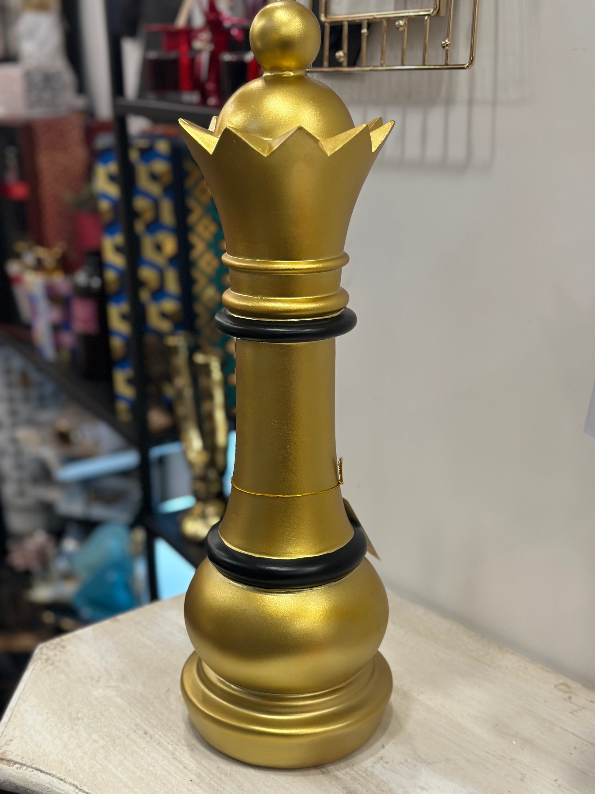 Elegante scultura oro con finiture nere a forma di regina degli scacchi. Un complemento d'arredo che renderà la tua casa elegante!