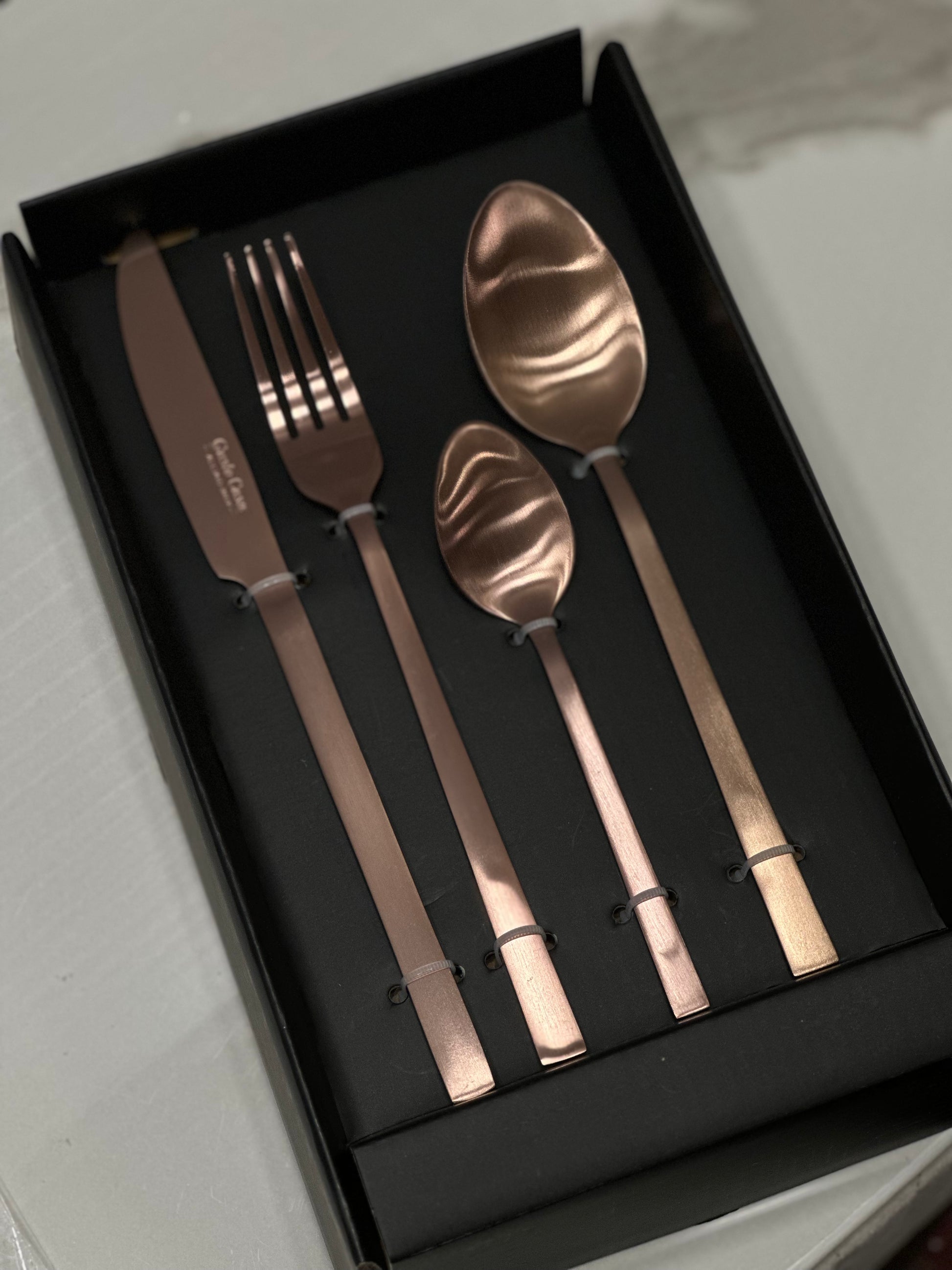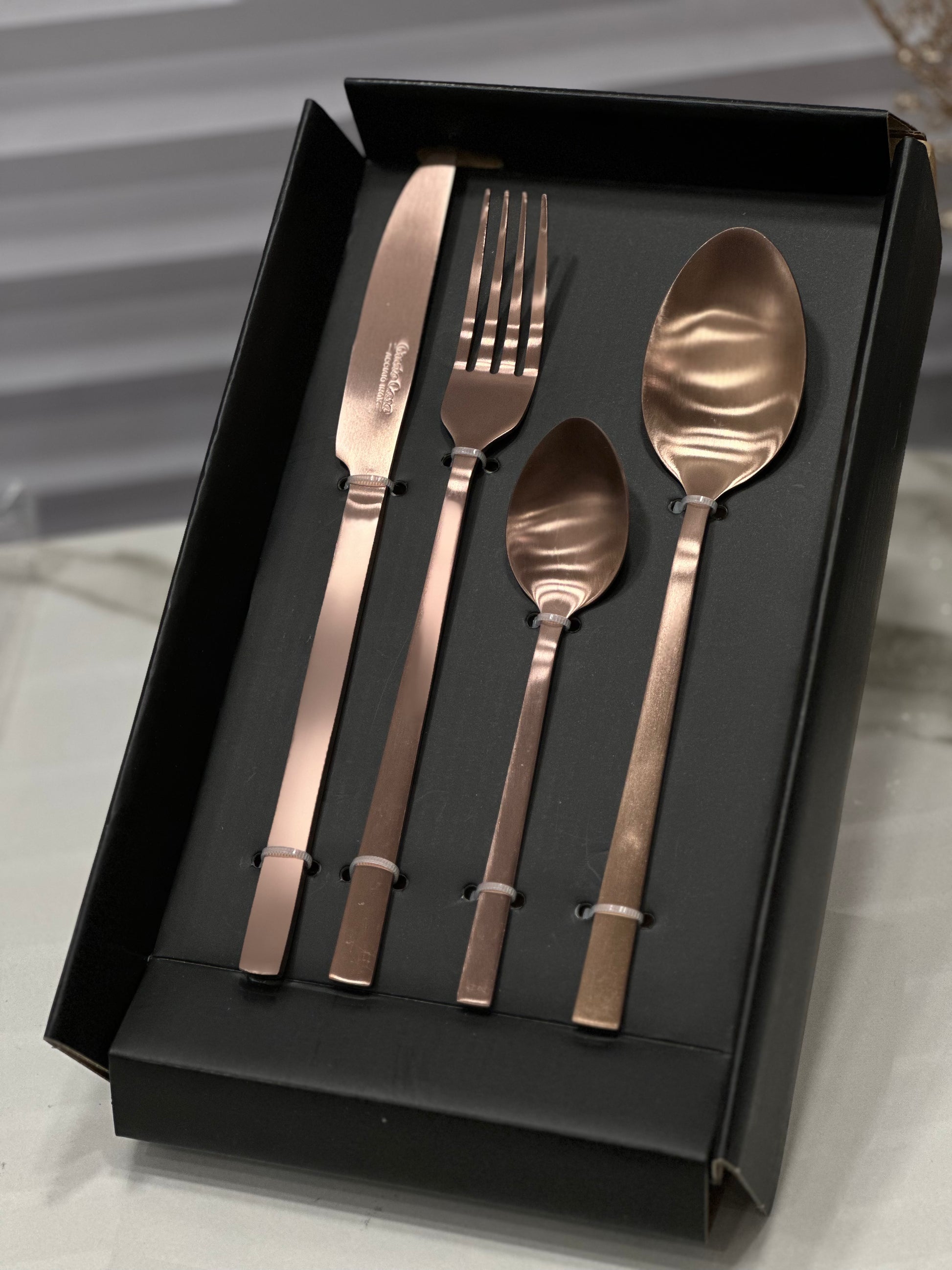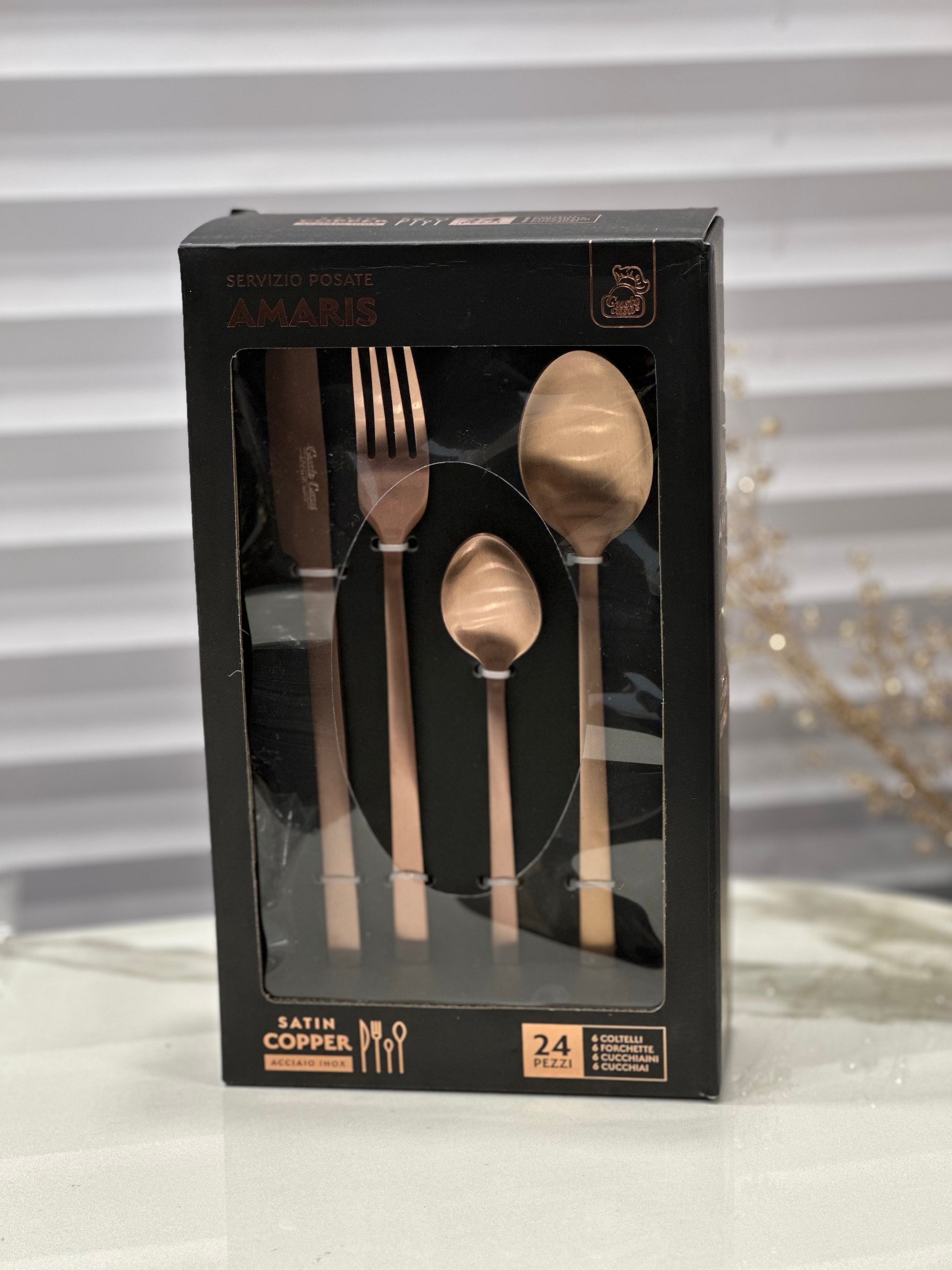 Set 24 posate in acciaio ossidabile satin color bronzo. Il set comprende: