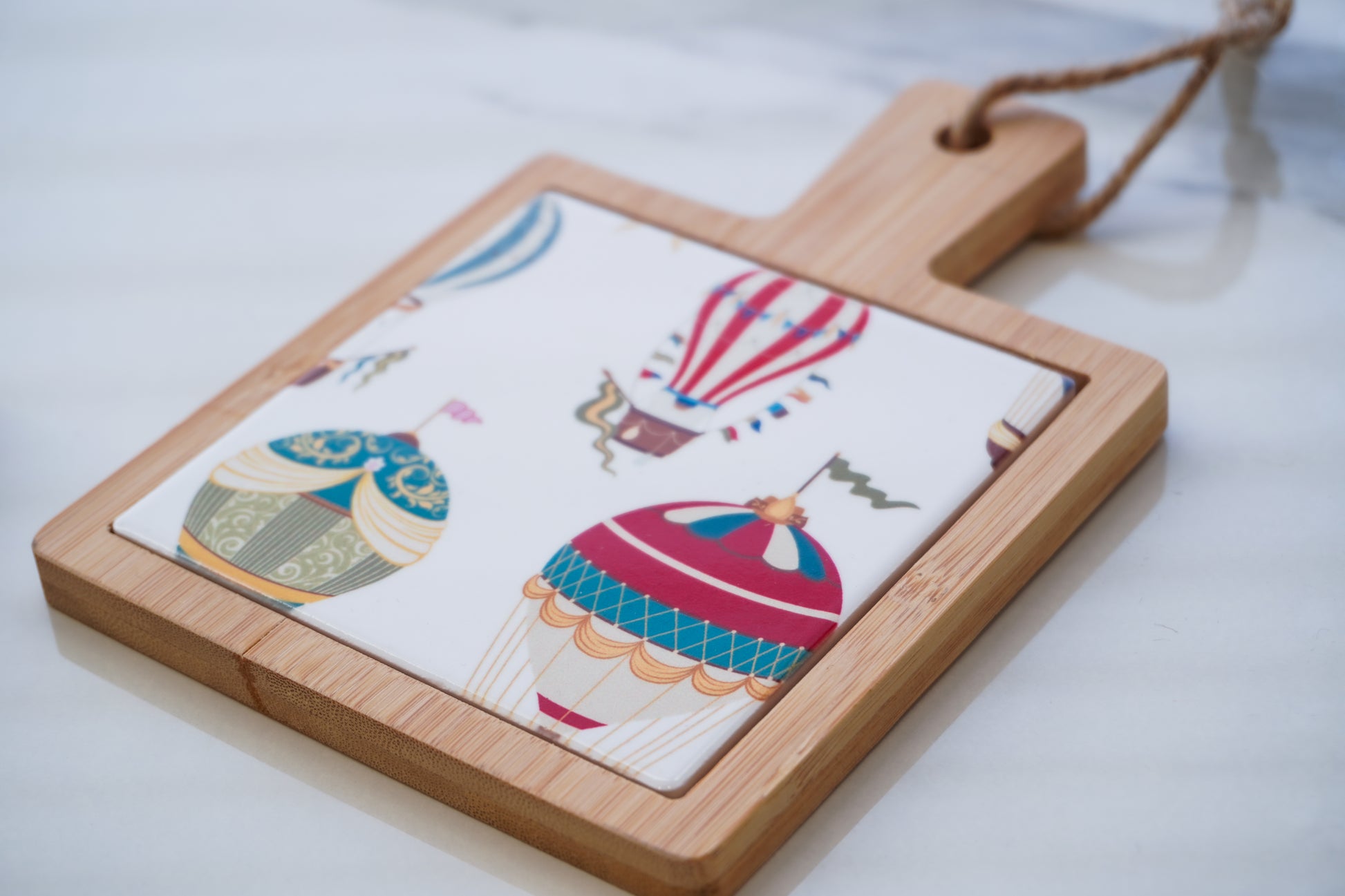 Un piccolo tagliere in legno con motivi Circus