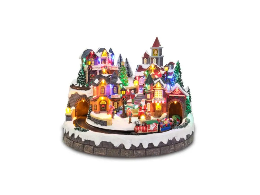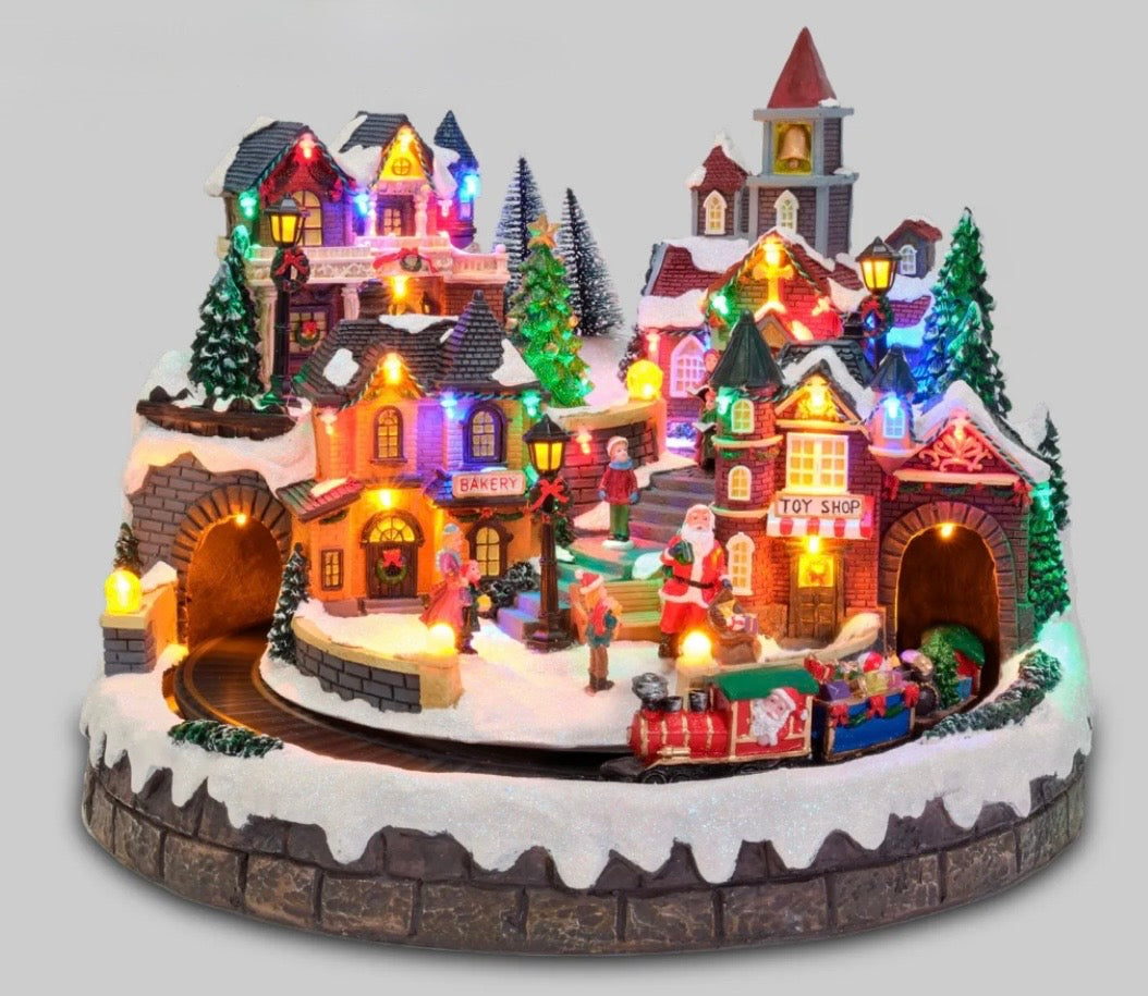 Villaggio di Natale c/luci, trenino che gira, suoni, movim.